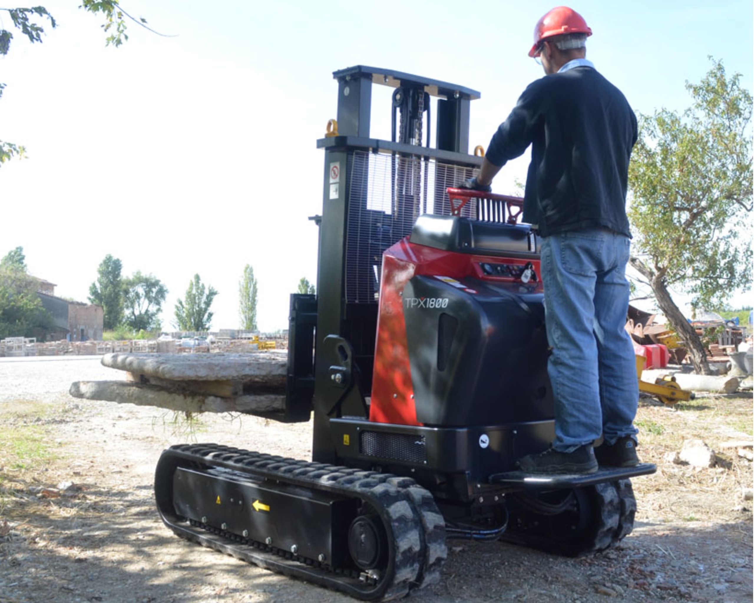 Le chariot élévateur chenillé Hinowa TPX1800 révolutionne la manutention avec ses fourches à pantographe extensibles, une innovation qui surpasse les modèles TP1600 et TP1800.
